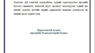 МОНГОЛ УЛСЫН ГАРАМГАЙ БААТАР Л.ДАНДАРЫН НЭРЭМЖИТ СУМЫН ХҮНДЭТ ШАГНАЛААР ШАГНАГДСАН ИРГЭД