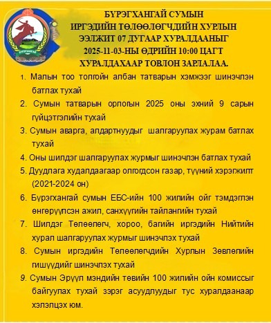 СУМЫН ИРГЭДИЙН ТӨЛӨӨЛӨГЧДИЙН ХУРЛЫН ЗӨВЛӨЛ ХУРАЛДЛАА