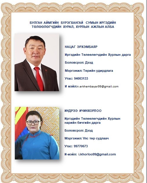 БҮРЭГХАНГАЙ СУМЫН ИТХ-ЫН АЖЛЫН АЛБАНЫ АЛБА ХААГЧДЫН МЭДЭЭЛЭЛ