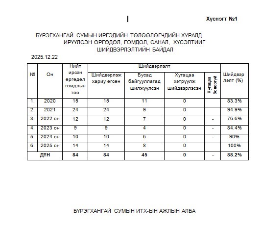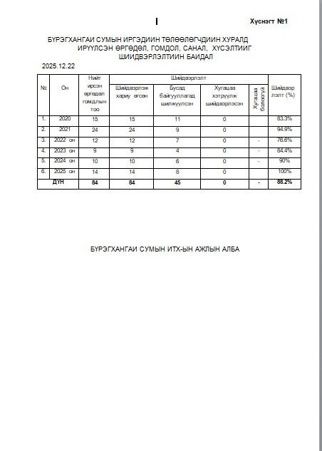СУМЫН ИТХ-ЫН АЖЛЫН АЛБАНД ИРҮҮЛСЭН ӨРГӨДӨЛ ГОМДЛЫН ГОМДЛЫН МЭДЭЭ 2020-2025 он