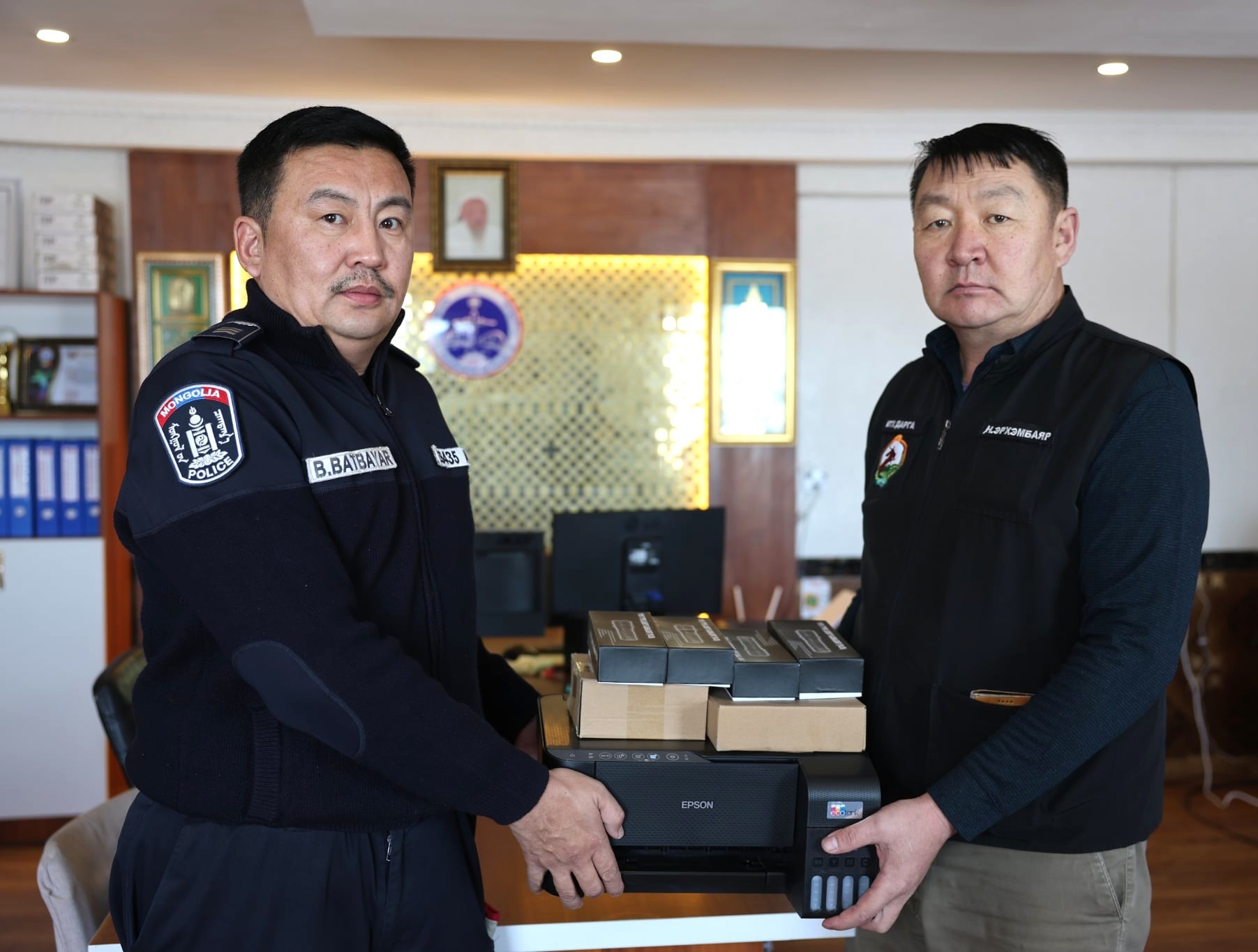 ✔️Сумын ИТХ-ын дарга бөгөөд Гэмт хэргээс урьдчилан сэргийлэх ажлыг зохицуулах зөвлөлийн дарга Н.Эрхэмбаяр нь өнөөдөр /2026.01.05/ цагдаагийн тасгийн алба хаагчдын өдөр тутмын үйл ажиллагаанд шаардлагатай тоног төхөөрөмж (принтер, цахилгаан бороохой, маяак, чанга яригч), бичиг хэрэгслийг хүлээлгэн өглөө.
