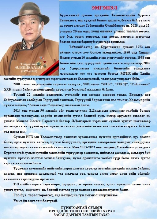 Булган аймгийн Бүрэгхангай сумын ИТХ